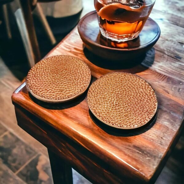 These copper-plated classics suit several styles and add a vintage touch to any space they’re in. But there’s nothing antique about them: Thanks to their stainless steel core, they’ll effectively protect surfaces from hot drinks. The circular, hammered pattern provides texture without putting your drinks off balance, and if you happen to spill a little wine while pouring? They wipe down easily, so cleaning up takes little effort.